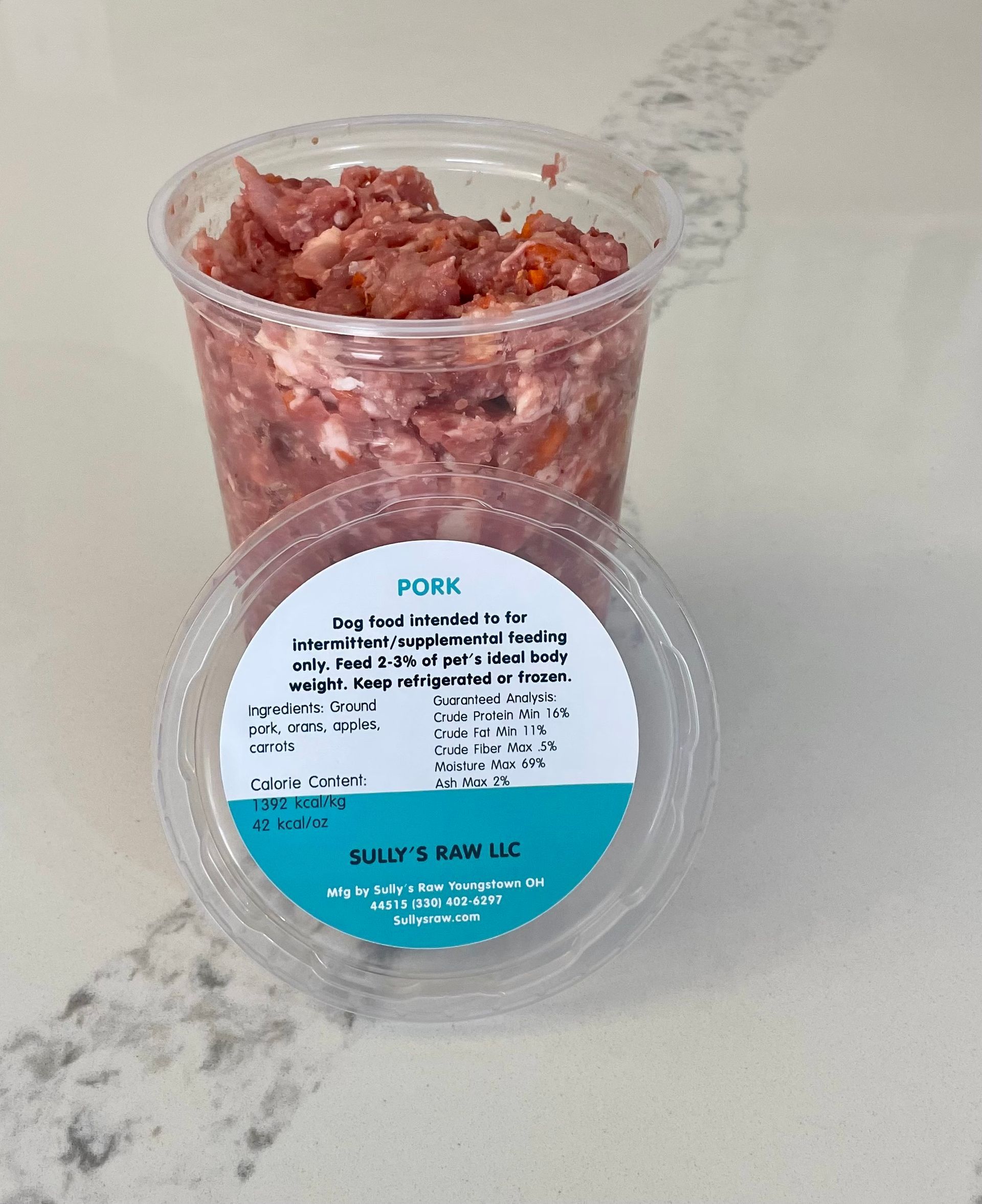 Ingredients: Ground pork, organs, apples, carrots.